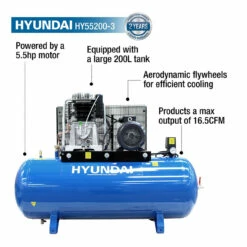 Hyundai HY55200-3 200L 3-Phase Floor-Mounted Belt Drive Compressor 5.5hp 400V
