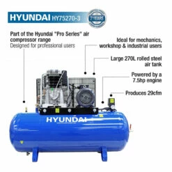 Hyundai HY75270-3 270L 3-Phase Floor-Mounted Belt Drive Compressor 7.5hp 400V