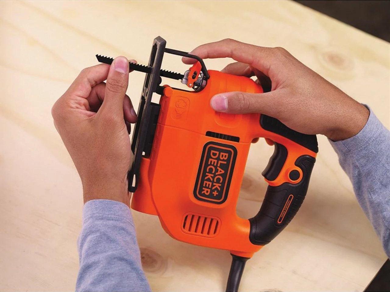The Black & Decker KS701EK Jigsaw has a range of useful features for improved cutting performance. The variable speed function allows for cutting of different material thicknesses, control is also optimised by an ergonomic design with a low vibration factor during operation.