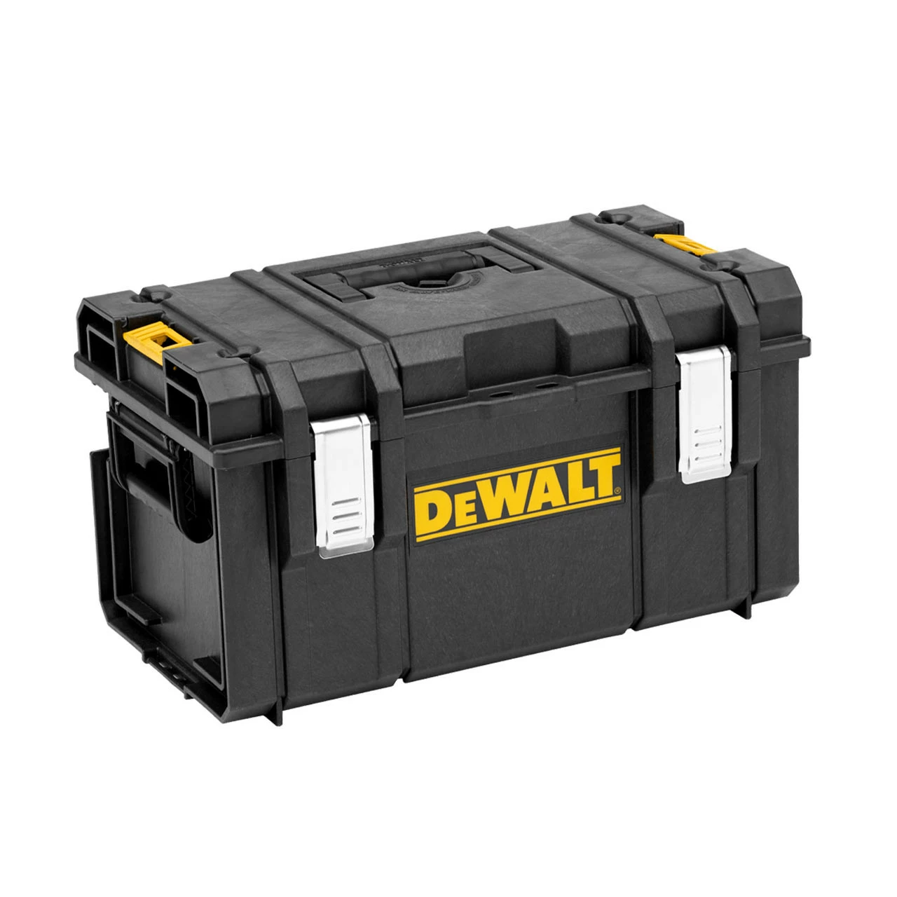 The DeWalt DCK278P2 18V XR Twin Pack is comprised of a DCD996 combi drill with brushless motor, an DCG412 angle grinder, multi-voltage DCB105 XR universal charger, DS300 tough system kit box and two 18V 5.0Ah batteries.
