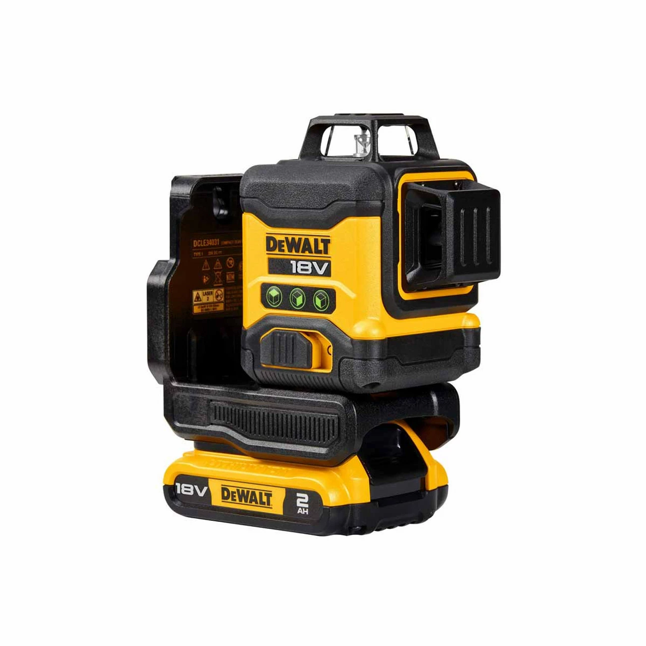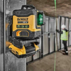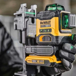 The DeWalt DCLE34031D1-GB is a green laser level with compact triple 360 degree line laser. It can be used by a wide range of trade sectors, including window installation, suspended ceiling installation, carpentry & joinery, tiling, plumbing & electrical, and much more, lasers are an indispensable tool. The kit comes with a versatile bracket that allows you to use a DeWalt-style quick-clamp or mount the unit on a tripod (both 1/4″ and 5/8″ threading). As an alternative, you can use the laser without the bracket to benefit from the strong magnet or screw hook with a keyhole shape.
