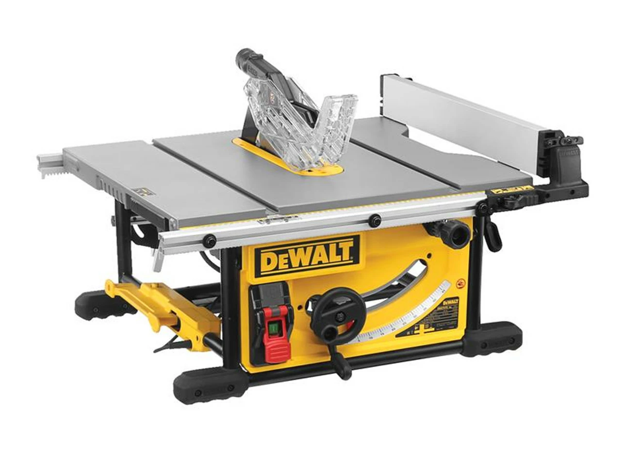 The DeWalt DWE7492 250mm Portable Table Saw has a powerful brushed motor for high performance in all applications. The rack and pinion fence system front and rear fence lock and large clear scales combine to give an extremely accurate and easy-to-use saw. An overload protection system ensures a powerful performance in hard wet or frozen woods.
