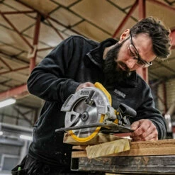 The DeWalt DWE560 circular saw is the corded solution for professionals working on general purpose cutting and ripping applications. A high power 1,350W motor gives the DWE560 provides a no load speed of 5,550rpm, while its 16mm bore saw blade can cut up to a depth of 65mm. Users can adjust the bevel angle up to 48º, allowing for precise, accurate cuts, while the cutting depth can be scaled to a maximum of 65mm at 90º.