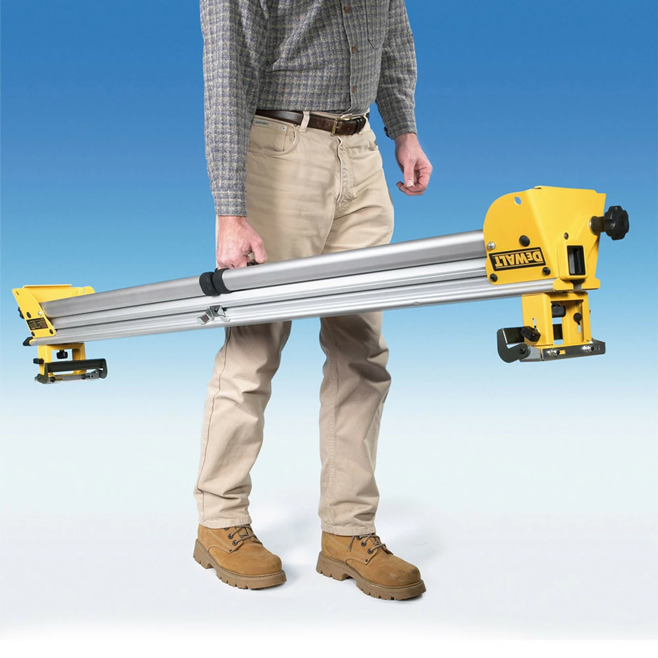 - The leg stand has a unique bracket mounting system that takes all DeWalt and most competitive mitre saws.