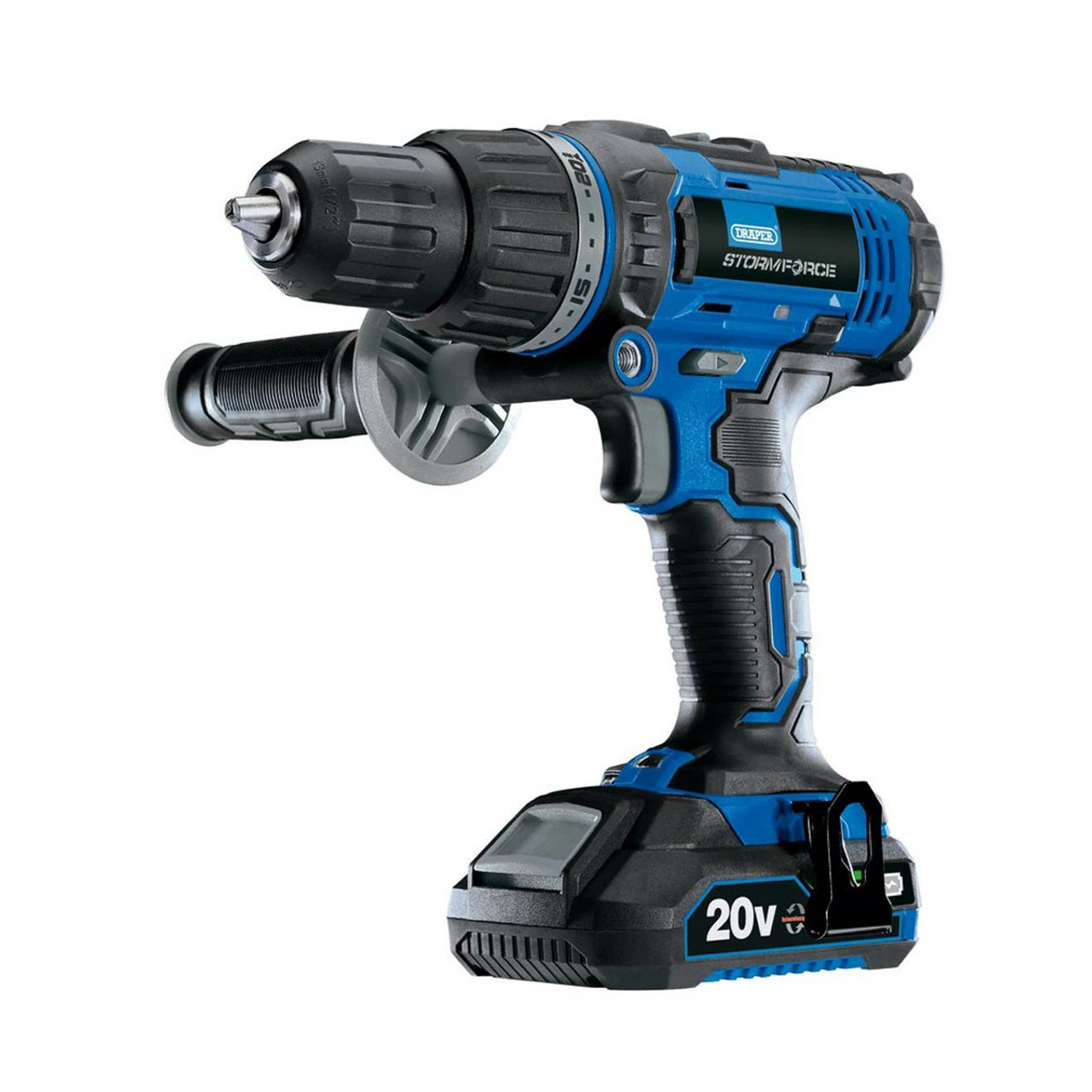 The Draper 17763 Storm Force 20V kit is ideal for a multitude of tasks. Supplied with 20V combi drill, 20V 1/4″ hex impact driver, 20V SDS+ rotary hammer drill, 20V 115mm angle grinder, 20V reciprocating saw, 20V circular saw, 20V orbital jigsaw, 20V random orbit sander, 20V oscillating multi – tool, 2 x 2.0Ah li-ion batteries, 1 x 4.0Ah li-ion battery and charger. All stored in a large, multi – pocket tool bag for easy transportation and storage.