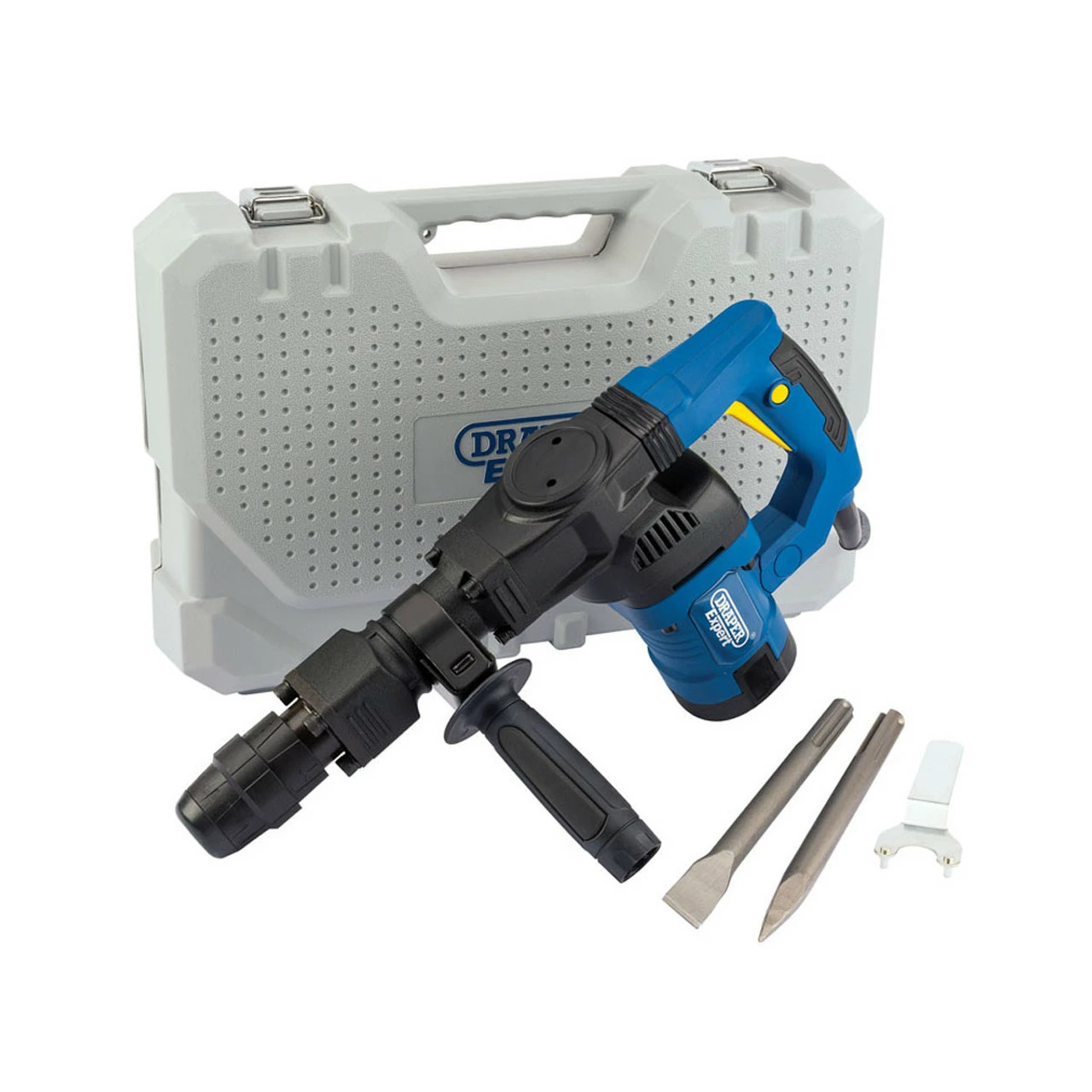 Features: Expert Quality, 1 function – Chisel, Anti – vibration handle, Supplied with adjustable side handle, 2 x SDS MAX chisels flat and pointed and 2.2m cable with BS Plug