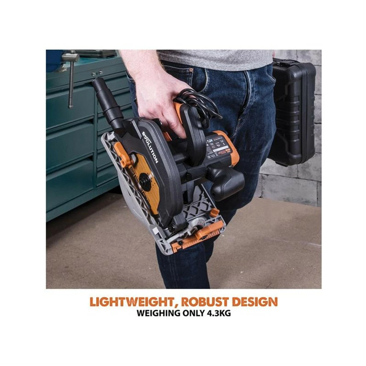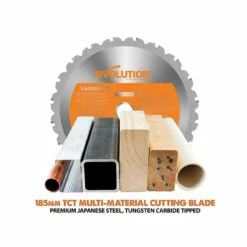 The Evolution R185CCS Circular Saw is ideal for both trade and DIY users thanks to its powerful motor and optimized gearbox. It can cut through a variety of materials such as mild steel, aluminium, wood (even with embedded nails), plastic, copper, pvc and more.