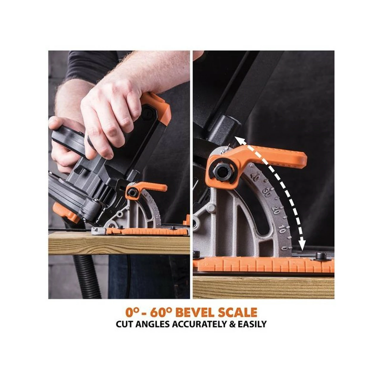 - The saw features an adjustable cutting depth and 0-60 ? bevel capabilities for versatile cutting in any material.
