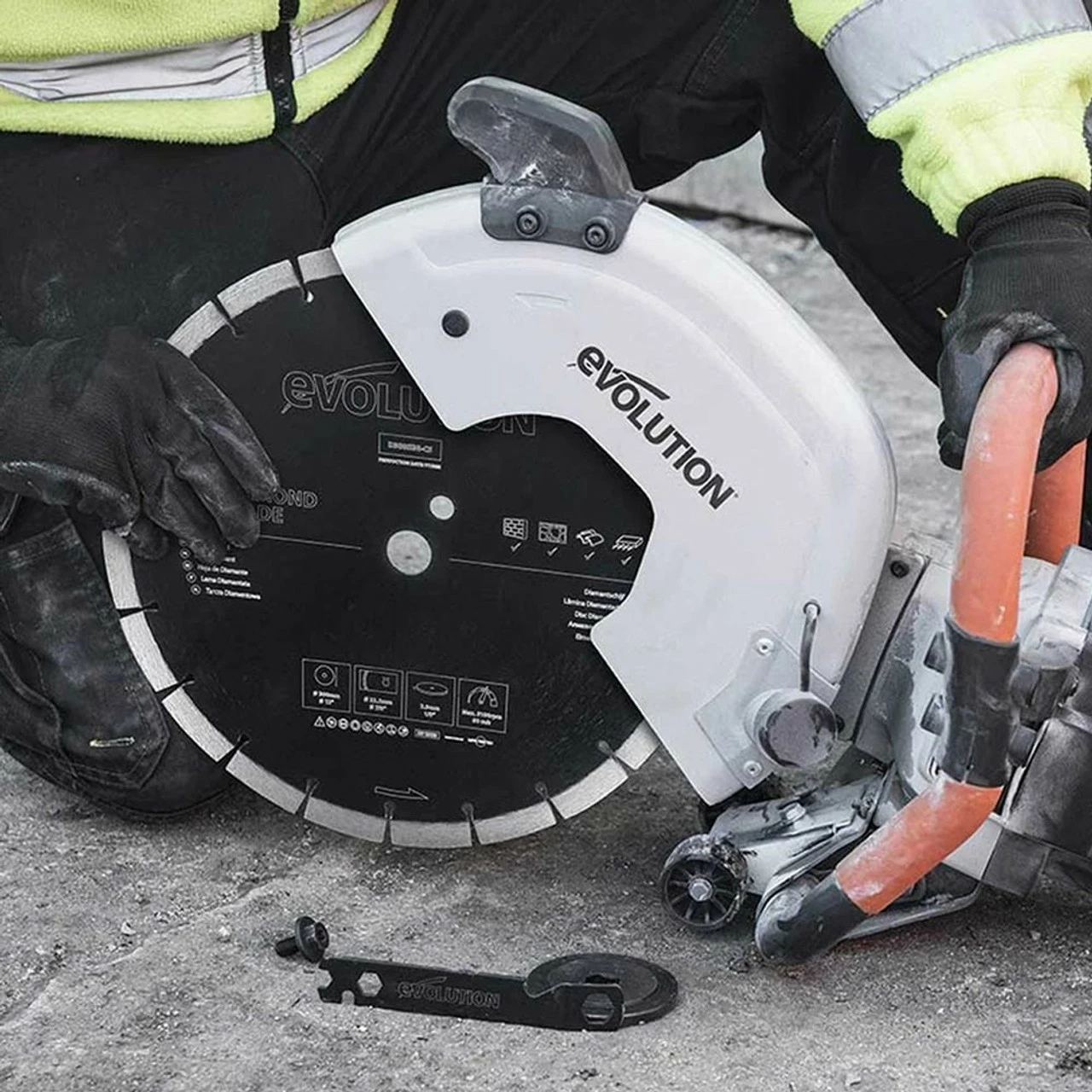 The Evolution R300DCT electric disc cutter is the simplest tool for cutting standard and steel reinforced concrete, stone, brick, paving & more! The saw has an impressive cut capacity of 115mm vs the existing model making this one of the deepest cutting 300mm machines on the market!
