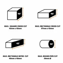 - Max. Mitre Cut (45° x 0°): 40 x 40mm