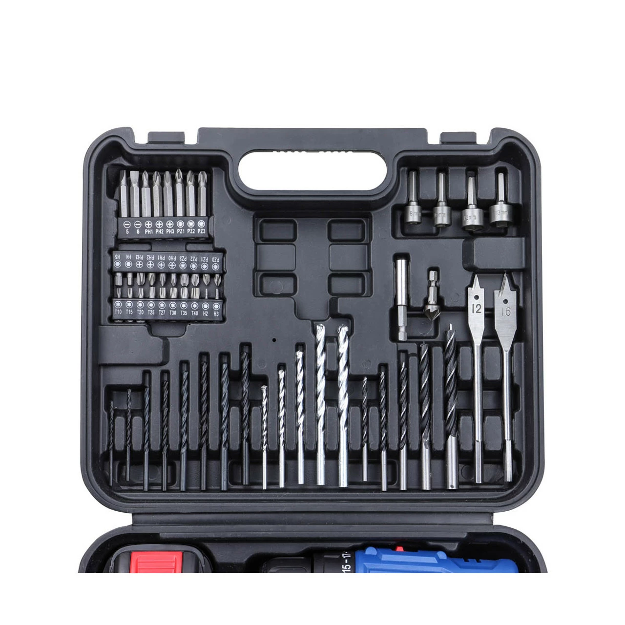 Contained in a heavy-duty yet lightweight plastic carry box, the HY2175 comes with 54 accessories that include a selection of popular sizes of HSS twist drills, tungsten carbide tipped masonry drills, wood boring drills, flat wood drill bits, rotary burrs, wire brushes and a combination of 25mm and 50mm screwdriver bits to suit a huge range of DIY jobs.