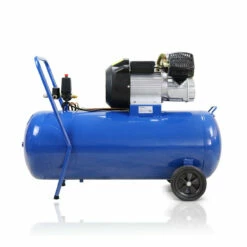 The 100 litre tank capacity provides a constant supply of air for airtools with 14CFM, 396 litres per minute air displacement. Twin quick release air outlets for increased versatility allow two air-lines / tools to be connected at the same time. The pressure regulator allows the outlet pressure to be increased or decreased and the two pressure gauges measure pressure in the tank and the outlet pressure. It’s also fitted with an over pressure safety valve, the automatic pressure control system switches the compressor off when the maximum pressure of 8 bar has been reached and restarts it when pressure drops to 6 bar.