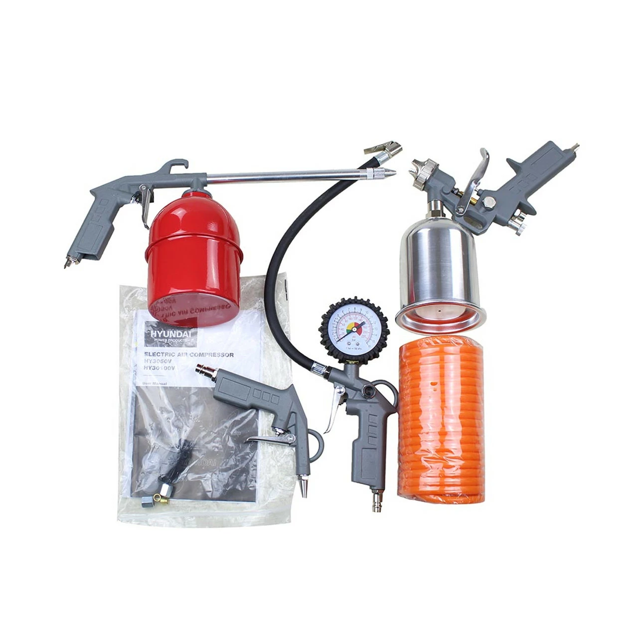 - 5 piece tool kit including spray gun, air duster/jetter, degreaser gun, hose with Q/R fittings & tyre inflator.