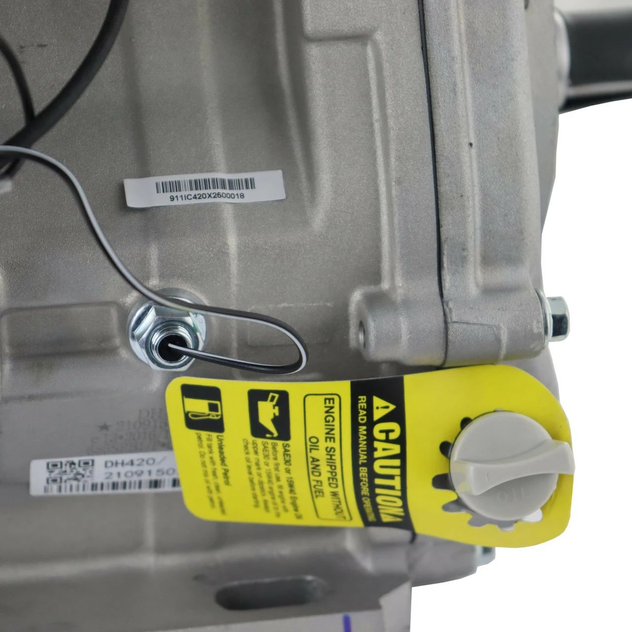- 457cc horizontal straight shaft petrol engine: Produces 15hp for heavy-duty applications