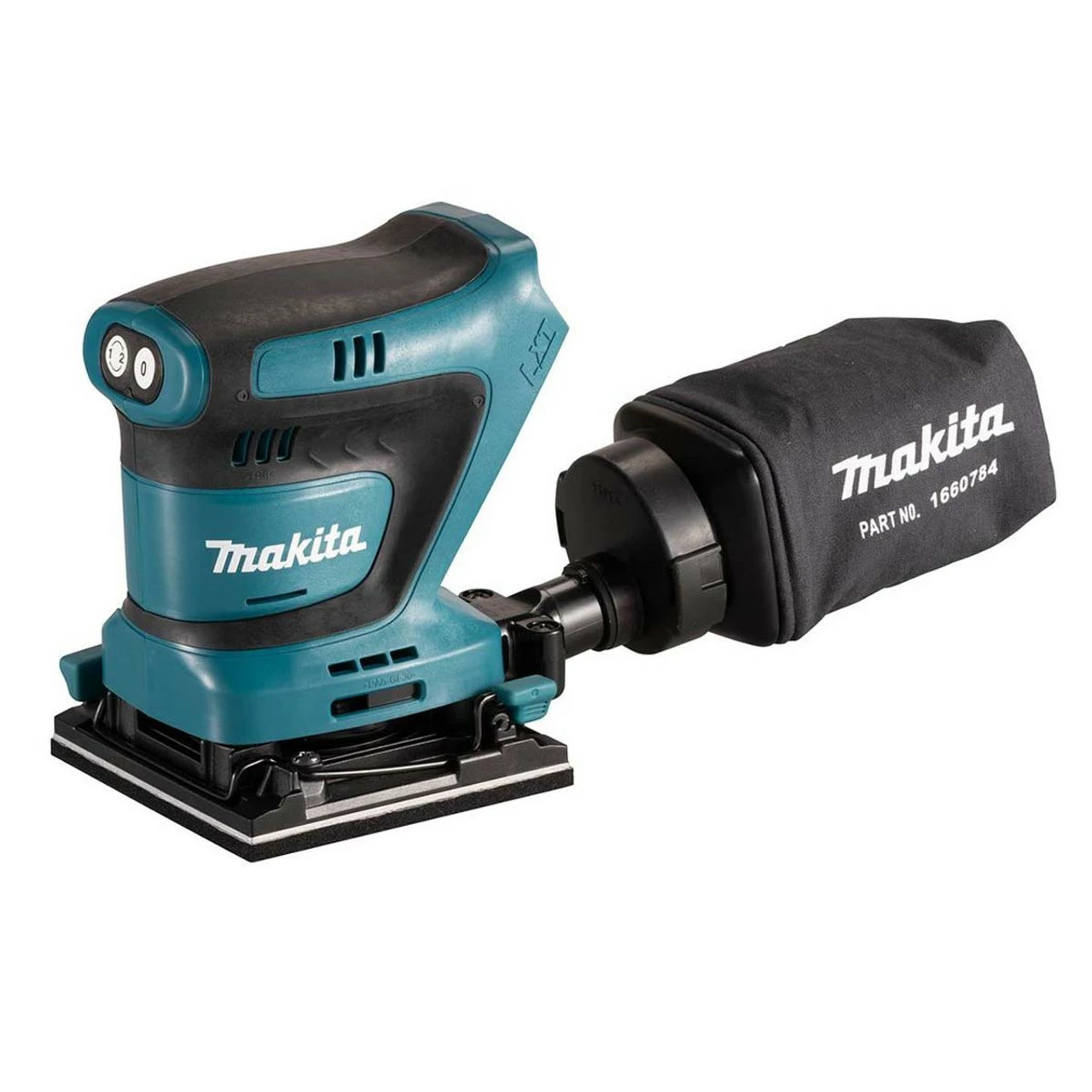 Makita DBO481Z is a powerful, but compact 18V sander that can produce 28,000/22,000 sanding strokes per minute and 14,000/11,000 orbits per minute providing performance comparable to corded power tools, but with the portability and convenience of a battery powered tool.Â