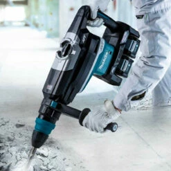 The Makita HR006GD203 is a cordless, brushless rotary hammer drill with a 2-mode operation, and it is an ideal tool for trade professionals and contractors who need to tackle heavy-duty work. The rotary hammer can operate in rotary hammering mode, or hammering mode only. While the tool does have a compact and lightweight design, it does not compromise on power and is comparable to a corded tool. With anti-vibration housing and an overall ergonomic design, the tool is comfortable to use and easy to control, even over longer sessions. The soft no-load function automatically reduces the motor speed when the tool is idle, which helps to save power and reduce vibration of the machine body. The build-in LED job light helps to illuminate the work area in poor visibility. The tools is powered by two 2.5AH 40v Max Li-ion Batteries running in series, to give an effective output of 80V.