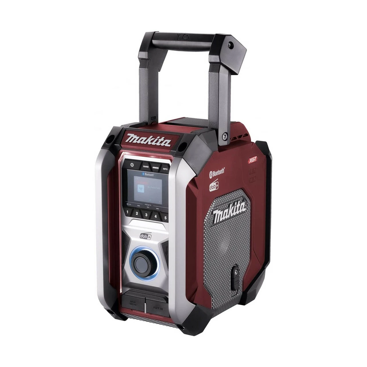 A limited-edition red DAB/DAB+ job site radio, the MR007GZ02 may be powered by Makita 10.8 or 12V Max CXT, 14.4 or 18V LXT, or 40V Max XGT batteries (batteries not included) or an AC power converter. It can pick up both DAB and DAB+ radio stations.