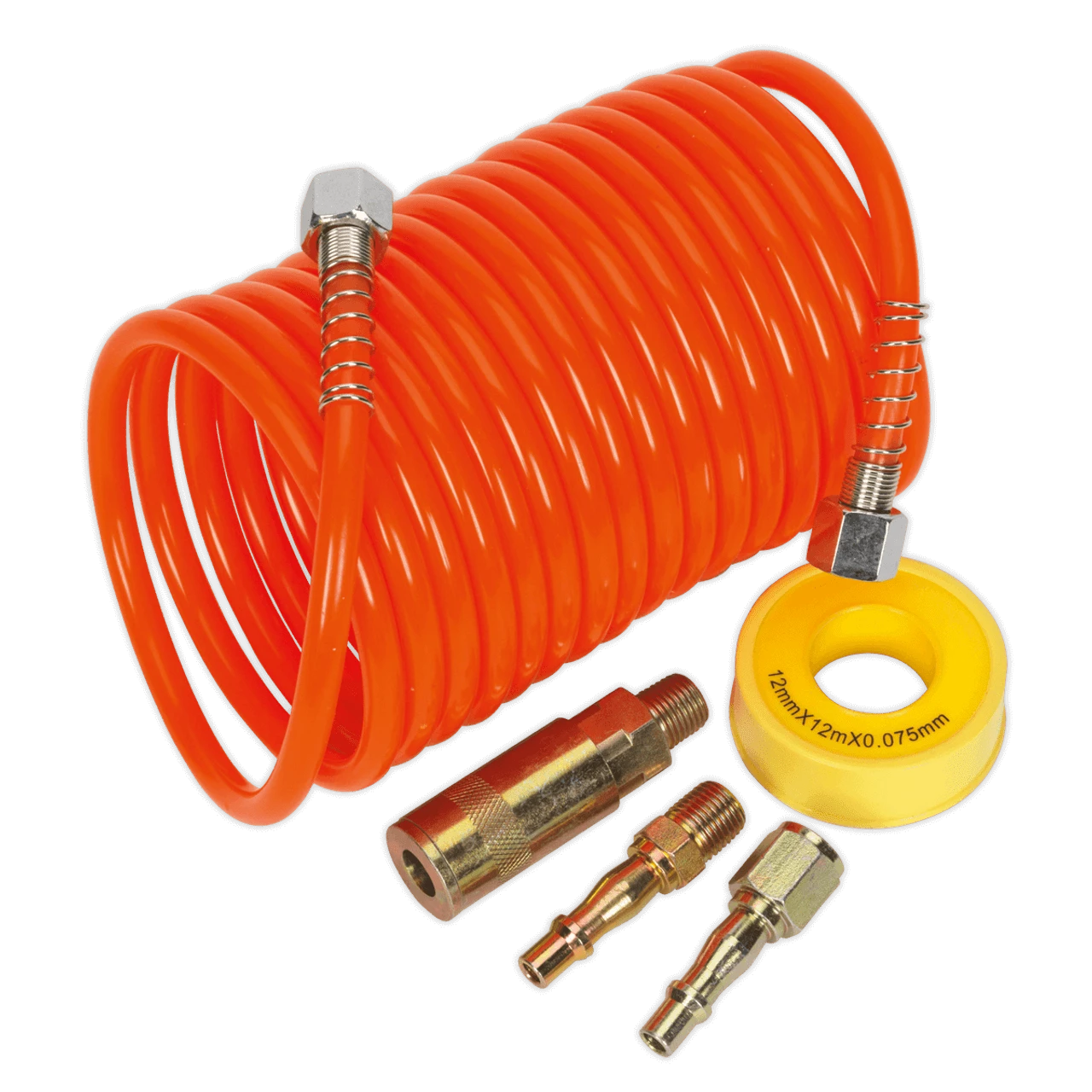 - 1 x Sealey AHK03 Air Hose Kit 5m x Ø5mm PU Coiled with Connectors