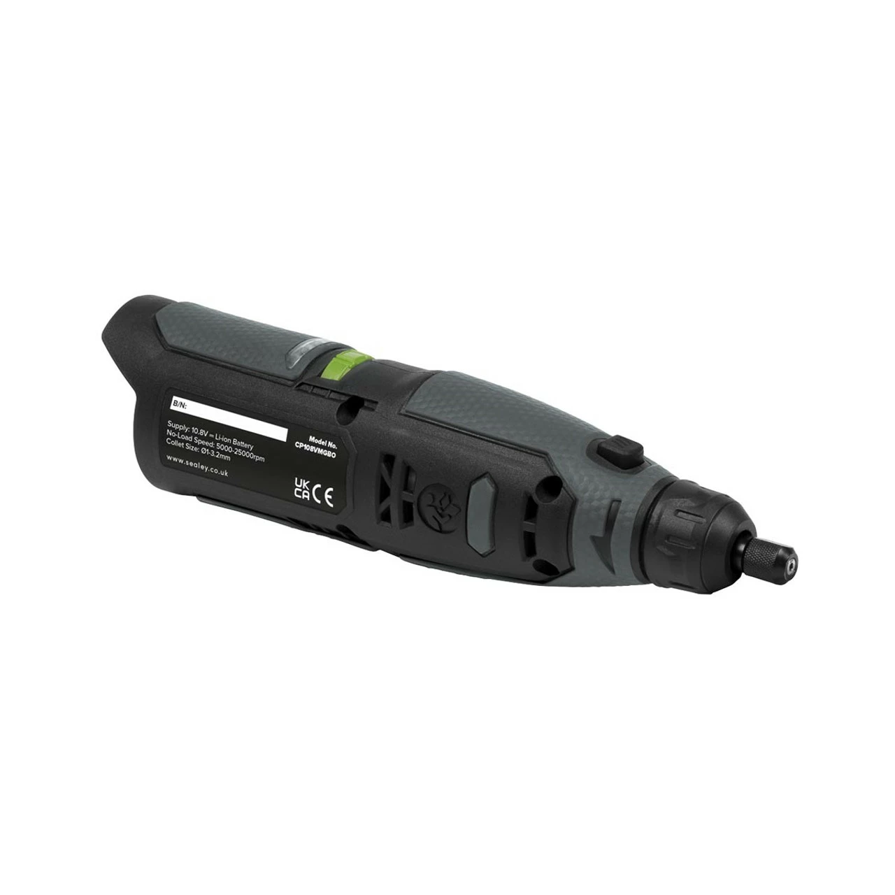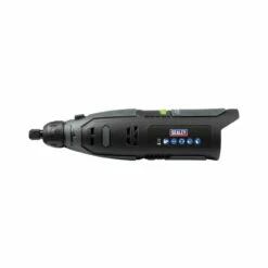 Compact, lightweight cordless multipurpose mini grinder and 50-piece accessory kit – body only. Comfortable composite housing with soft grip to reduce vibration. 7-Speed settings provide the control required to complete various tasks. Quick release collet and spindle lock for fast tool changes. Supplied with a 50-piece range of tips, wheels, discs, dressing stones and a chuck spanner. Integral LED work light and LED battery level indicator. Requires compatible 10.8V 2Ah or 4Ah battery and mains charger, sold separately.