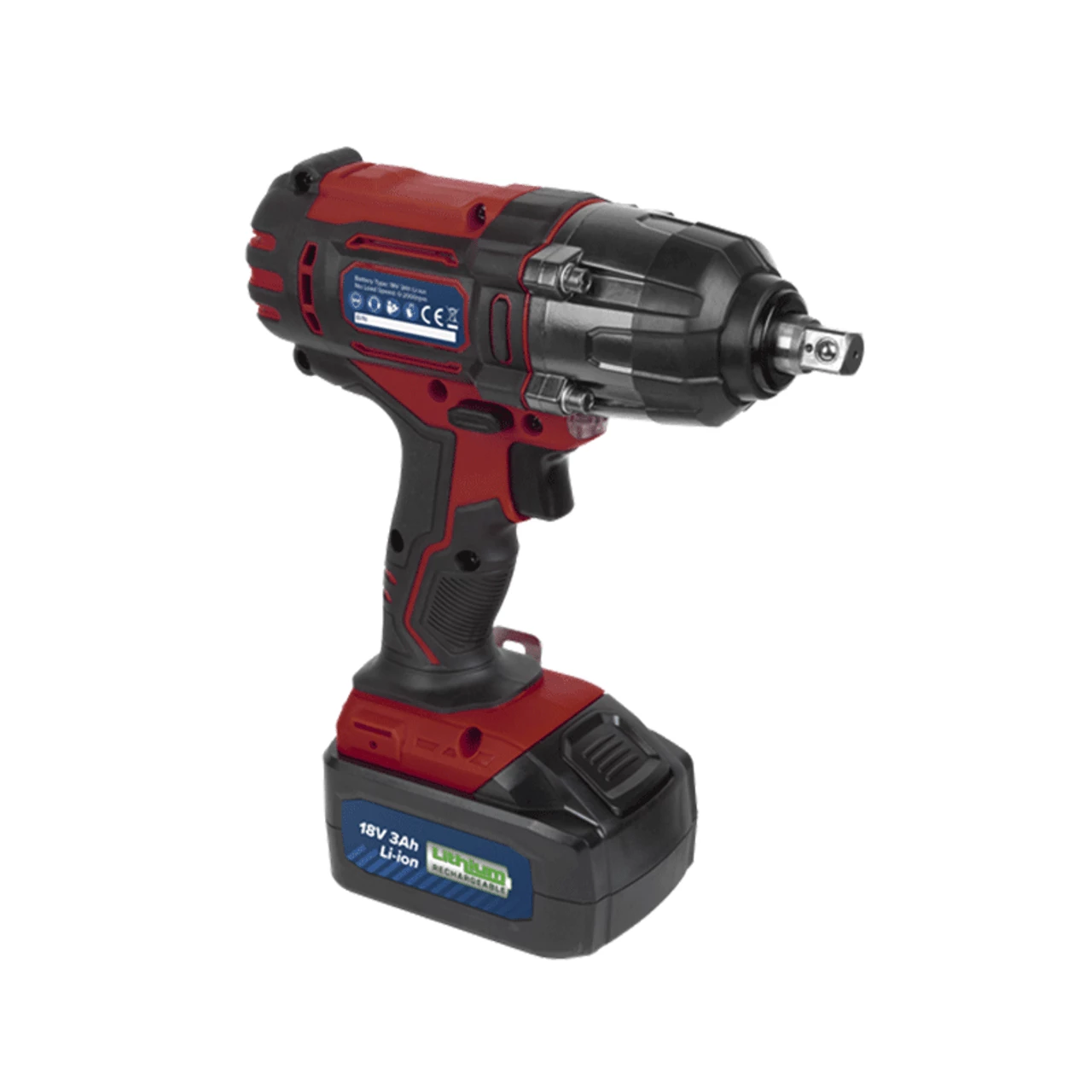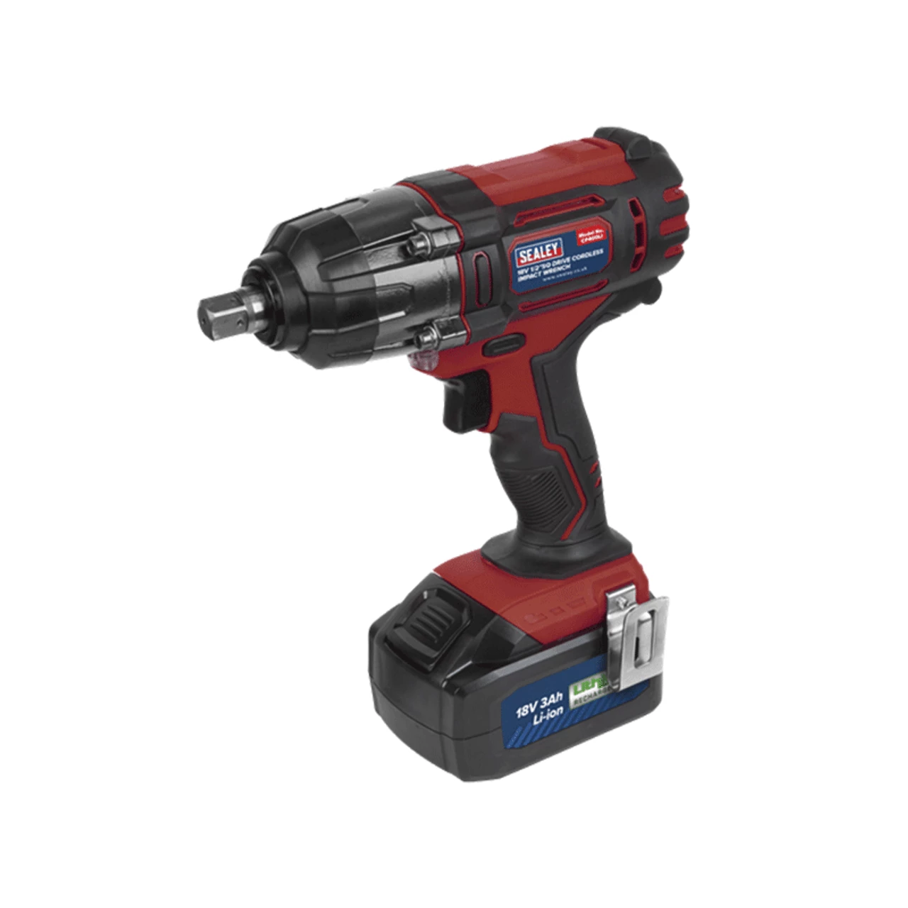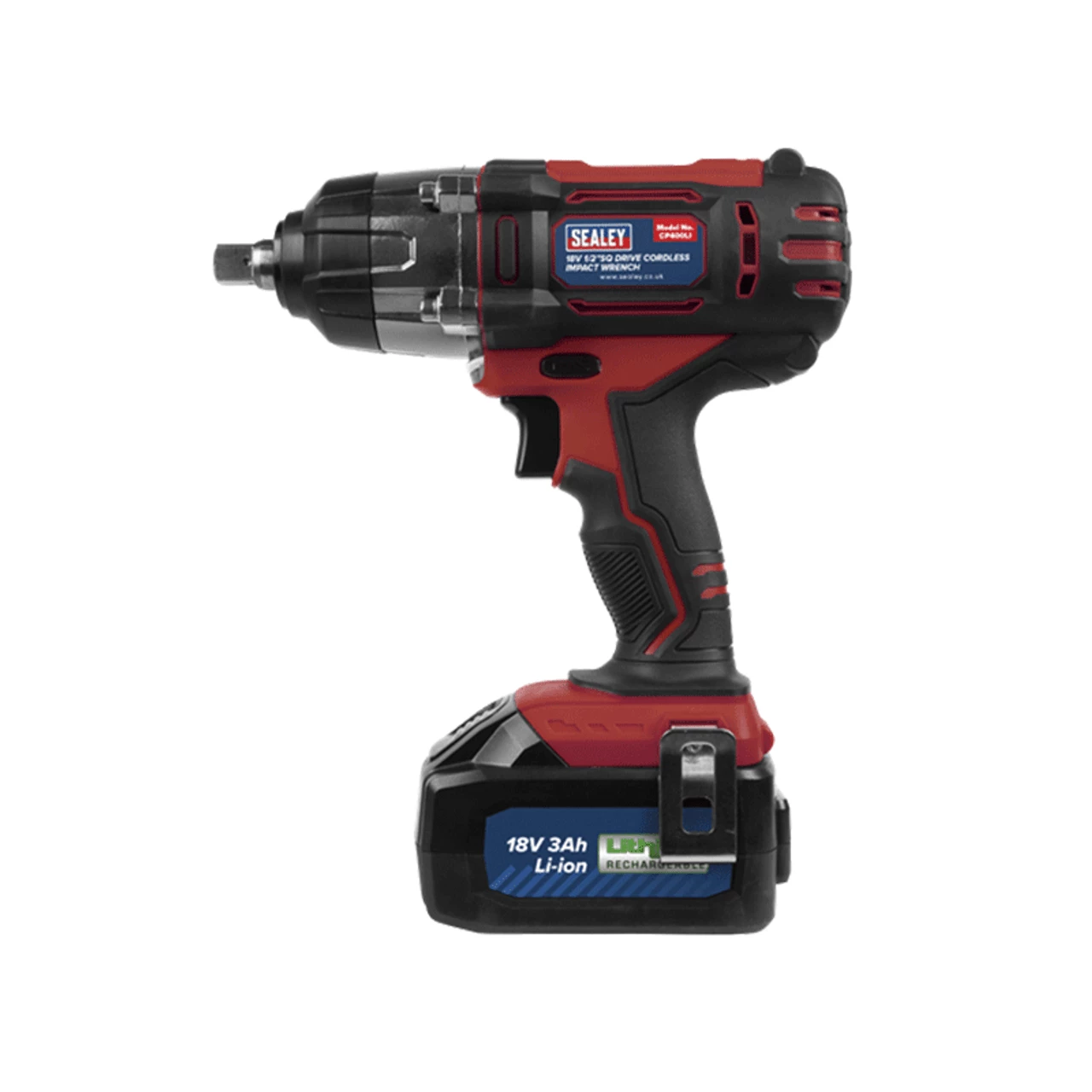 The Sealey CP400LI 18V 1/2″Sq Drive Cordless Impact Wrench has a variable speed trigger and also has a double injected body with rubber grips for added comfort and control whilst working. This impact wrench as has a cast aluminium gearbox and produces up to 400Nm of torque. The impact wrench is supplied in a storage case with a 3Ah Lithium-ion battery and 80 minute mains charger.