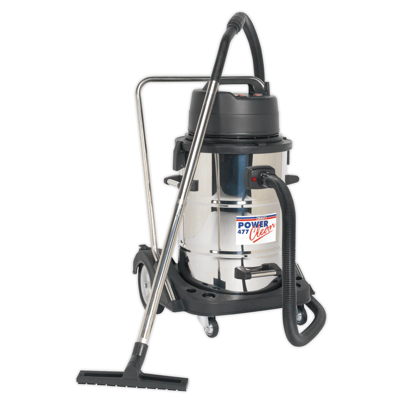Sealey PC477 Vacuum Cleaner Industrial Wet & Dry 77L Stainless Steel Drum with Swivel Emptying 2400W