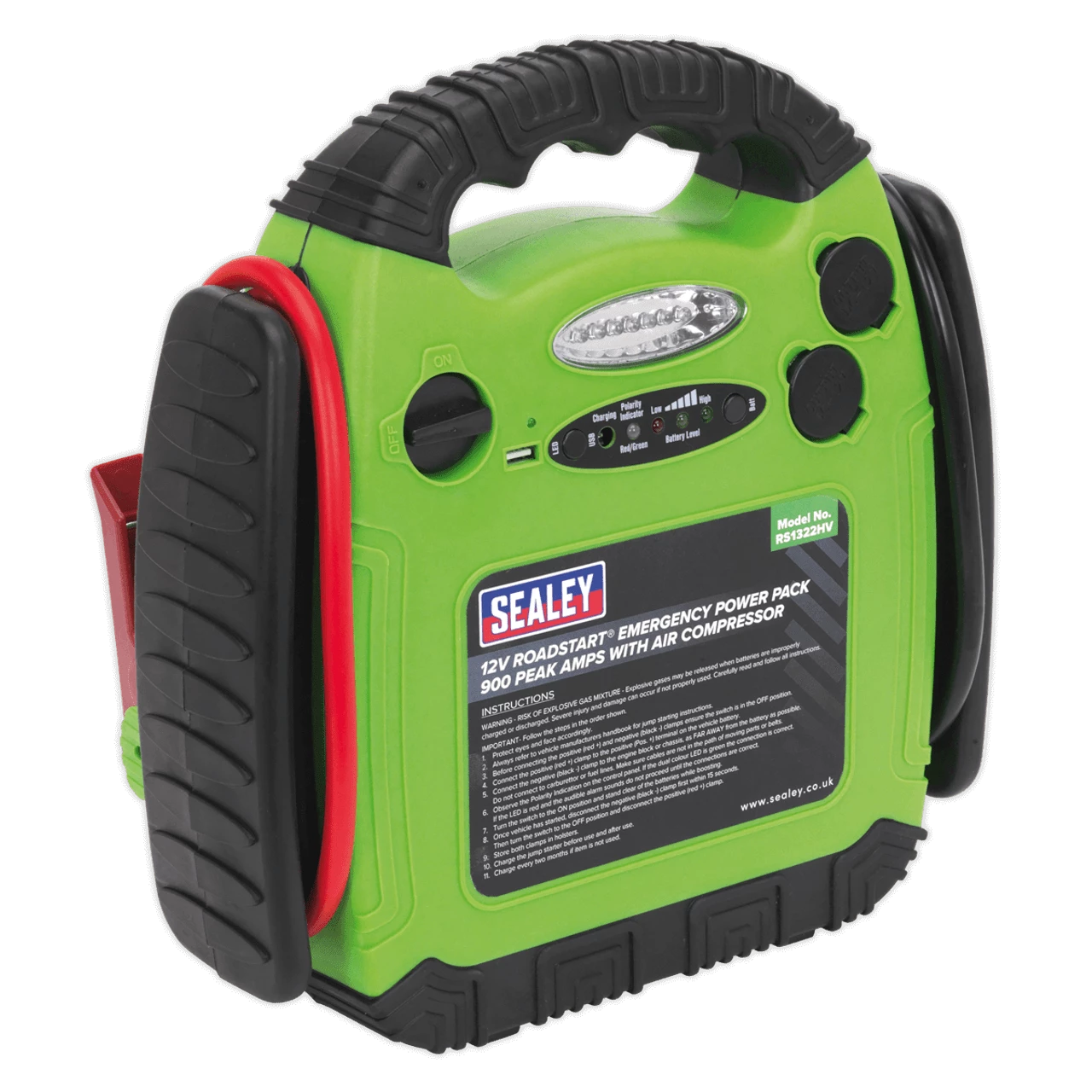 Sealey RS1322HV RoadStart® Emergency Jump Starter with Air Compressor 12V 900 Peak Amps