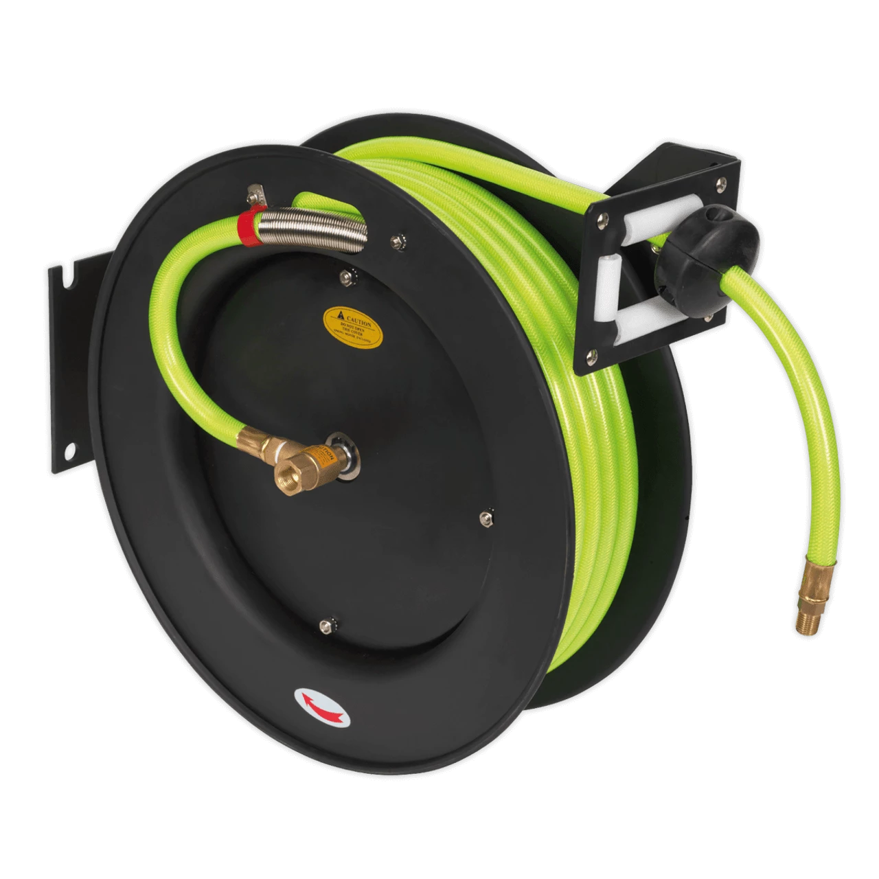 Sealey SA841HV Retractable Air Hose Metal Reel 15m Ø10mm ID High Visibility TPR Hose