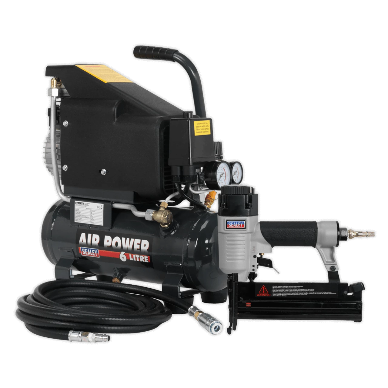 Sealey SAC0610EKIT Air Nail/Staple Gun Kit including Compressor, Hose & Nailer/Stapler