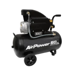 The Sealey SAC5020APK 50L Direct Drive Compressor 2hp has a aluminium cylinder head with cast iron cylinder which gives added resistance to wear and the copper wound motor provides longer lasting performance.. The pump head is directly coupled to the heavy-duty induction motor for reliable and quiet operation. The compressor is suitable for general purpose workshop applications. This compressor also comes with a 4pc multipurpose air accessory kit which includes Suction Feed Spray Gun, Tyre Inflator, Air Blow Gun, 5m Air Hose 1/4″BSP.