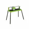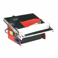 Powered by 500W – 230V electric motor with thermal overload protection and VDE approved magnetic safety switch. Chrome plated table tilts from 0° to 45° and is fitted with adjustable parallel cutting fence. Also includes 45° cutting guide. Supplied with Ø180mm continuous rimmed diamond cutting blade suitable for glazed ceramic, porcelain, quarry, slate and natural stone tiles. Incorporates 3.5L capacity water reservoir for blade cooling. Fitted with 3-pin plug.